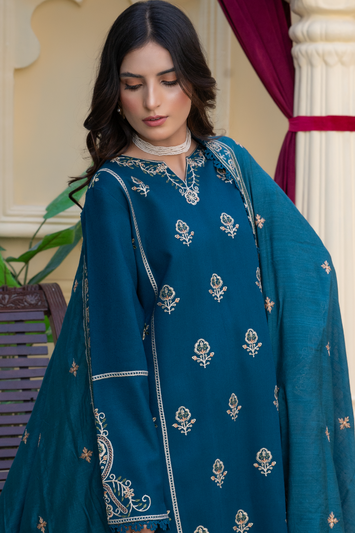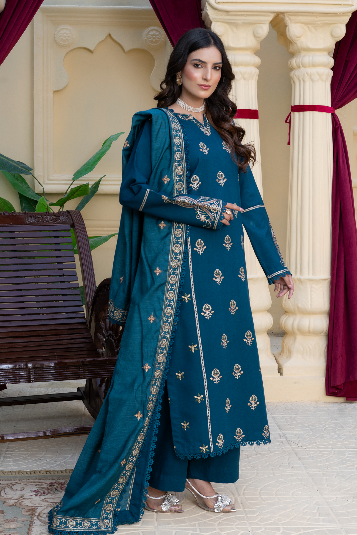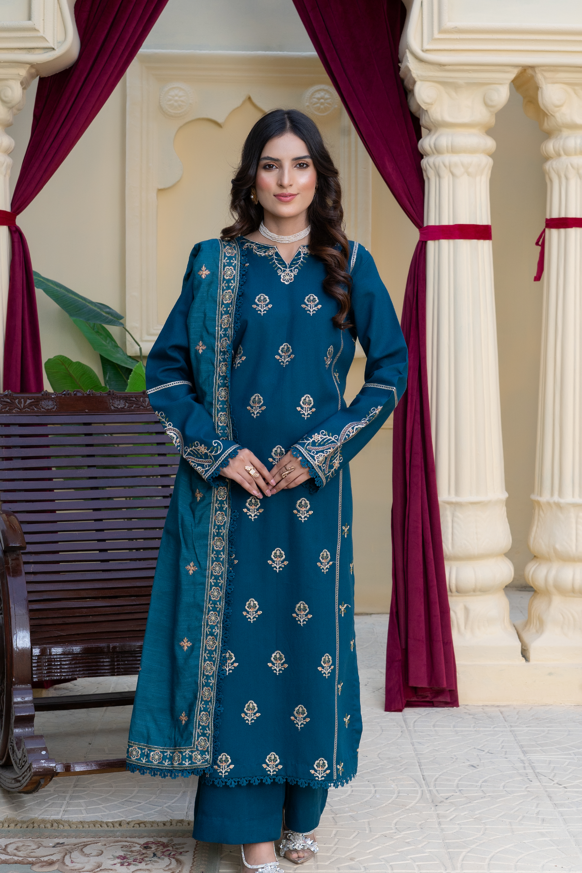 Subtle sophistication meets winter grace in ZYNORA, a stunning ensemble crafted from soft Karandi fabric in an elegant zinc hue.